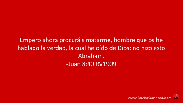 Empero ahora procuráis matarme, hombre que os he hablado la verdad, la cual he oído de Dios: no hizo esto Abraham. -Juan 8:40 RV1909