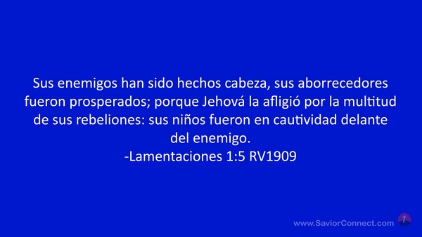 Sus enemigos han sido hechos cabeza, sus aborrecedores fueron prosperados; porque Jehová la afligió por la multitud de sus rebeliones: sus niños fueron en cautividad delante del enemigo. -Lamentaciones 1:5 RV1909