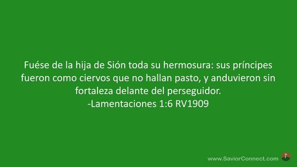 Fuése de la hija de Sión toda su hermosura: sus príncipes fueron como ciervos que no hallan pasto, y anduvieron sin fortaleza delante del perseguidor. -Lamentaciones 1:6 RV1909