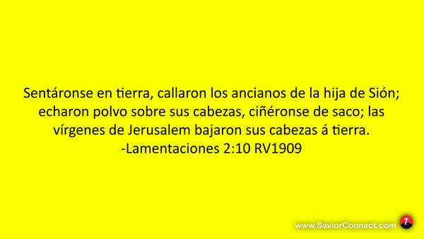 Sentáronse en tierra, callaron los ancianos de la hija de Sión; echaron polvo sobre sus cabezas, ciñéronse de saco; las vírgenes de Jerusalem bajaron sus cabezas á tierra. -Lamentaciones 2:10 RV1909