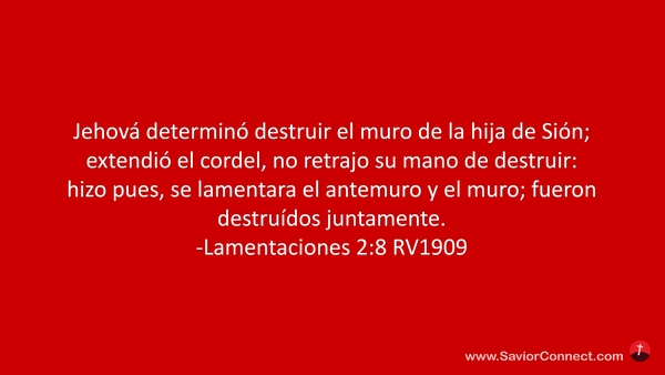 Jehová determinó destruir el muro de la hija de Sión; extendió el cordel, no retrajo su mano de destruir: hizo pues, se lamentara el antemuro y el muro; fueron destruídos juntamente. -Lamentaciones 2:8 RV1909