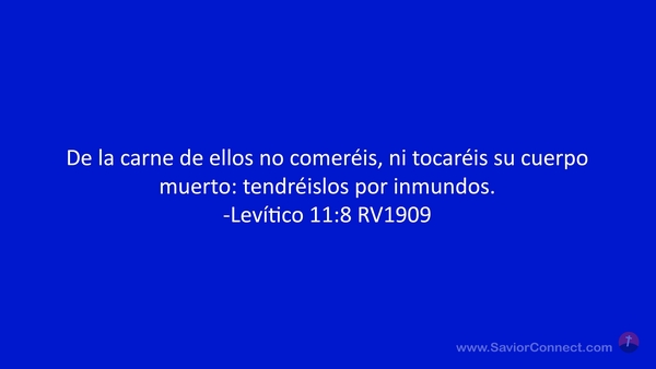 De la carne de ellos no comeréis, ni tocaréis su cuerpo muerto: tendréislos por inmundos. -Levítico 11:8 RV1909