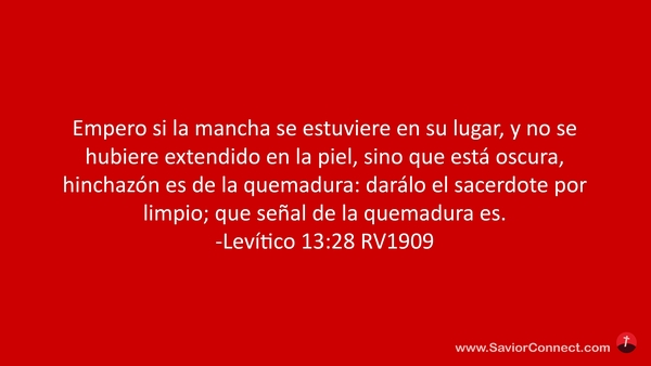 Empero si la mancha se estuviere en su lugar, y no se hubiere extendido en la piel, sino que está oscura, hinchazón es de la quemadura: darálo el sacerdote por limpio; que señal de la quemadura es. -Levítico 13:28 RV1909