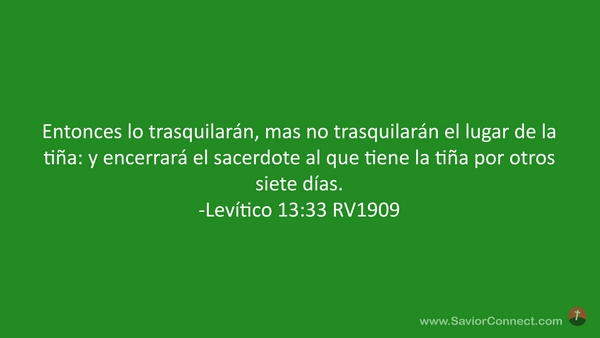 Entonces lo trasquilarán, mas no trasquilarán el lugar de la tiña: y encerrará el sacerdote al que tiene la tiña por otros siete días. -Levítico 13:33 RV1909