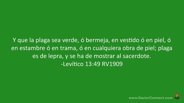 Y que la plaga sea verde, ó bermeja, en vestido ó en piel, ó en estambre ó en trama, ó en cualquiera obra de piel; plaga es de lepra, y se ha de mostrar al sacerdote. -Levítico 13:49 RV1909