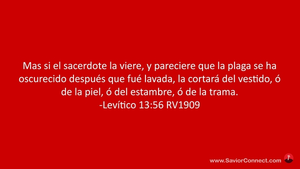 Mas si el sacerdote la viere, y pareciere que la plaga se ha oscurecido después que fué lavada, la cortará del vestido, ó de la piel, ó del estambre, ó de la trama. -Levítico 13:56 RV1909