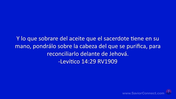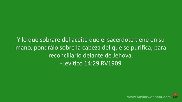 Y lo que sobrare del aceite que el sacerdote tiene en su mano, pondrálo sobre la cabeza del que se purifica, para reconciliarlo delante de Jehová. -Levítico 14:29 RV1909