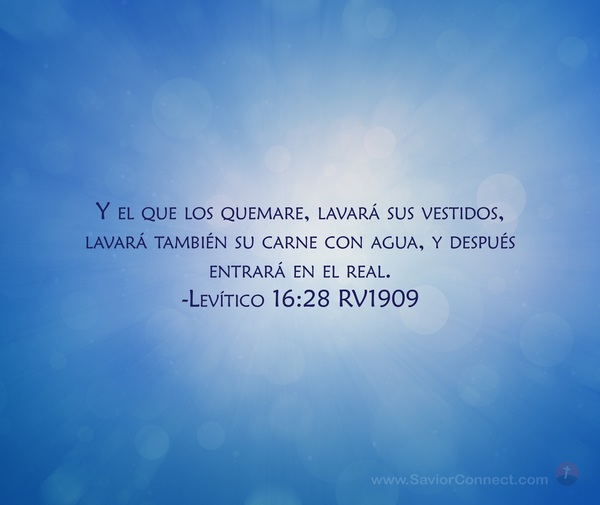 Y el que los quemare, lavará sus vestidos, lavará también su carne con agua, y después entrará en el real. -Levítico 16:28 RV1909