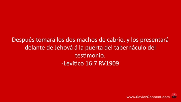 Después tomará los dos machos de cabrío, y los presentará delante de Jehová á la puerta del tabernáculo del testimonio. -Levítico 16:7 RV1909