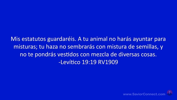 Mis estatutos guardaréis. A tu animal no harás ayuntar para misturas; tu haza no sembrarás con mistura de semillas, y no te pondrás vestidos con mezcla de diversas cosas. -Levítico 19:19 RV1909