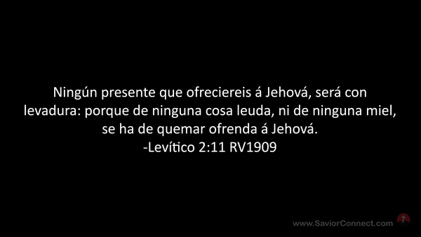 Ningún presente que ofreciereis á Jehová, será con levadura: porque de ninguna cosa leuda, ni de ninguna miel, se ha de quemar ofrenda á Jehová. -Levítico 2:11 RV1909