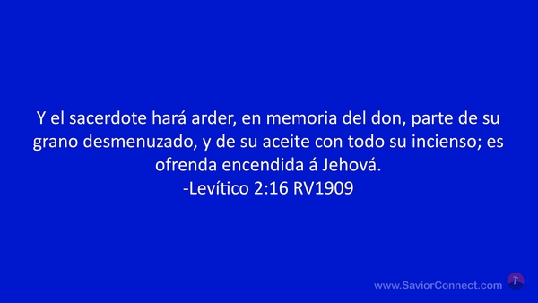 Y el sacerdote hará arder, en memoria del don, parte de su grano desmenuzado, y de su aceite con todo su incienso; es ofrenda encendida á Jehová. -Levítico 2:16 RV1909