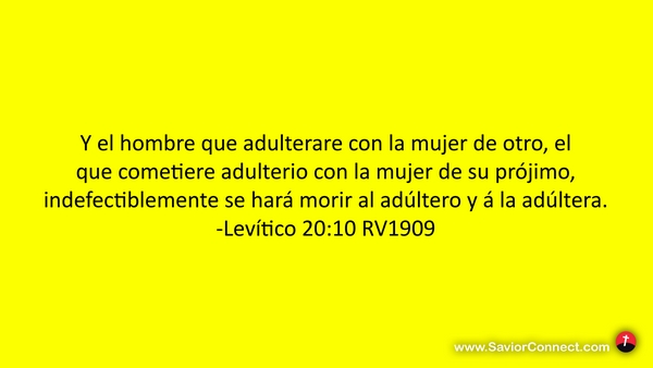 Y el hombre que adulterare con la mujer de otro, el que cometiere adulterio con la mujer de su prójimo, indefectiblemente se hará morir al adúltero y á la adúltera. -Levítico 20:10 RV1909