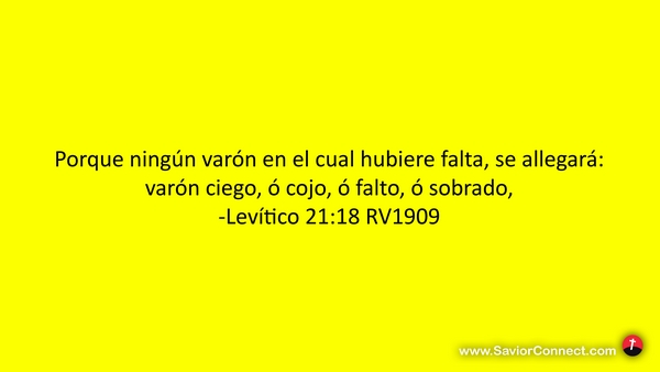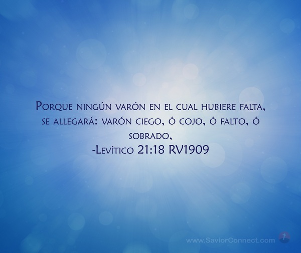 Porque ningún varón en el cual hubiere falta, se allegará: varón ciego, ó cojo, ó falto, ó sobrado, -Levítico 21:18 RV1909