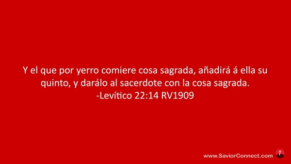 Y el que por yerro comiere cosa sagrada, añadirá á ella su quinto, y darálo al sacerdote con la cosa sagrada. -Levítico 22:14 RV1909