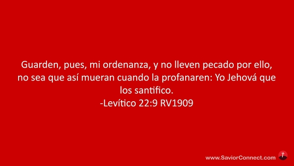Guarden, pues, mi ordenanza, y no lleven pecado por ello, no sea que así mueran cuando la profanaren: Yo Jehová que los santifico. -Levítico 22:9 RV1909