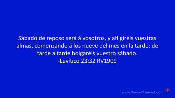 Sábado de reposo será á vosotros, y afligiréis vuestras almas, comenzando á los nueve del mes en la tarde: de tarde á tarde holgaréis vuestro sábado. -Levítico 23:32 RV1909