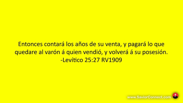 Entonces contará los años de su venta, y pagará lo que quedare al varón á quien vendió, y volverá á su posesión. -Levítico 25:27 RV1909