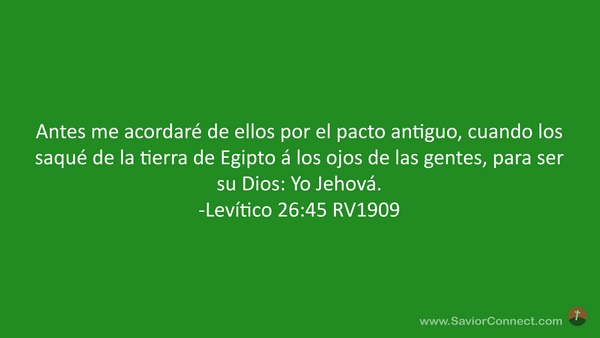 Antes me acordaré de ellos por el pacto antiguo, cuando los saqué de la tierra de Egipto á los ojos de las gentes, para ser su Dios: Yo Jehová. -Levítico 26:45 RV1909