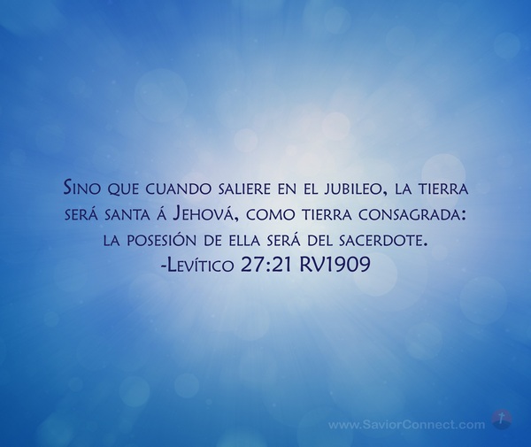 Sino que cuando saliere en el jubileo, la tierra será santa á Jehová, como tierra consagrada: la posesión de ella será del sacerdote. -Levítico 27:21 RV1909