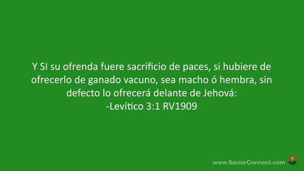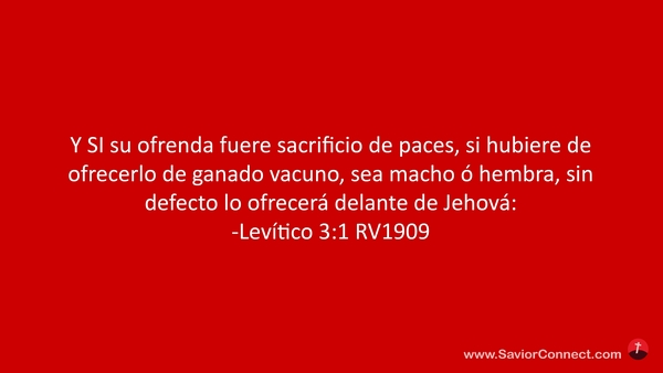 Y SI su ofrenda fuere sacrificio de paces, si hubiere de ofrecerlo de ganado vacuno, sea macho ó hembra, sin defecto lo ofrecerá delante de Jehová: -Levítico 3:1 RV1909