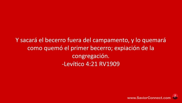 Y sacará el becerro fuera del campamento, y lo quemará como quemó el primer becerro; expiación de la congregación. -Levítico 4:21 RV1909