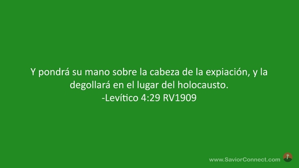 Y pondrá su mano sobre la cabeza de la expiación, y la degollará en el lugar del holocausto. -Levítico 4:29 RV1909