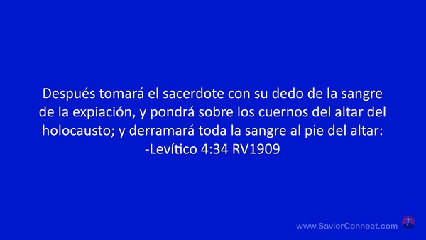 Después tomará el sacerdote con su dedo de la sangre de la expiación, y pondrá sobre los cuernos del altar del holocausto; y derramará toda la sangre al pie del altar: -Levítico 4:34 RV1909