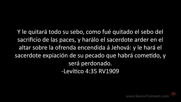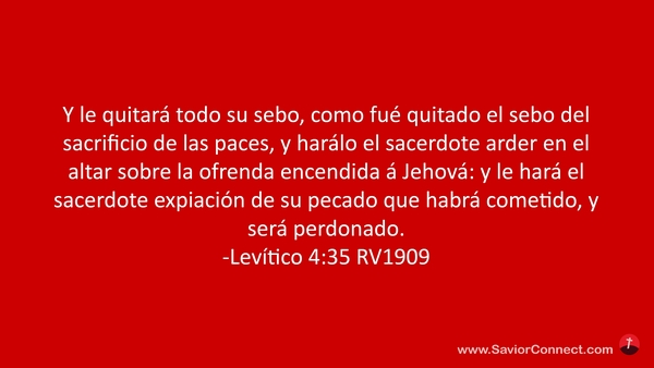 Y le quitará todo su sebo, como fué quitado el sebo del sacrificio de las paces, y harálo el sacerdote arder en el altar sobre la ofrenda encendida á Jehová: y le hará el sacerdote expiación de su pecado que habrá cometido, y será perdonado. -Levítico 4:35 RV1909