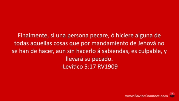 Finalmente, si una persona pecare, ó hiciere alguna de todas aquellas cosas que por mandamiento de Jehová no se han de hacer, aun sin hacerlo á sabiendas, es culpable, y llevará su pecado. -Levítico 5:17 RV1909