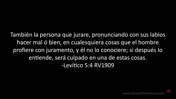También la persona que jurare, pronunciando con sus labios hacer mal ó bien, en cualesquiera cosas que el hombre profiere con juramento, y él no lo conociere; si después lo entiende, será culpado en una de estas cosas. -Levítico 5:4 RV1909