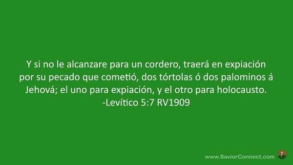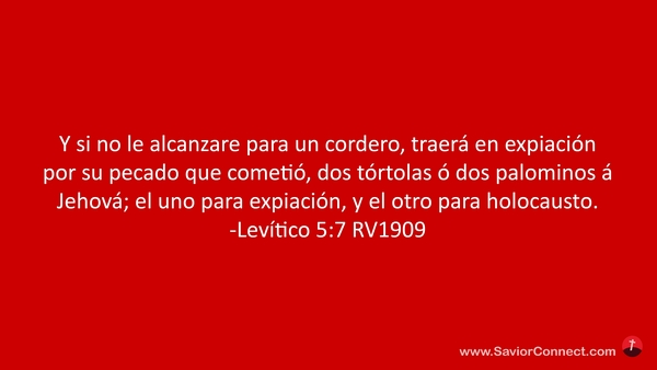 Y si no le alcanzare para un cordero, traerá en expiación por su pecado que cometió, dos tórtolas ó dos palominos á Jehová; el uno para expiación, y el otro para holocausto. -Levítico 5:7 RV1909