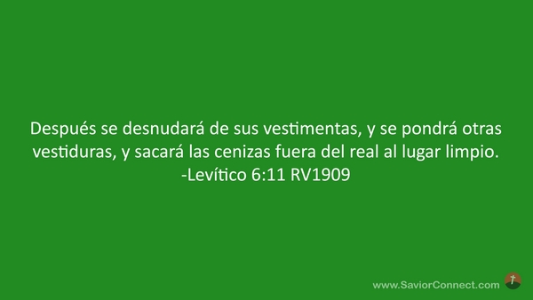 Después se desnudará de sus vestimentas, y se pondrá otras vestiduras, y sacará las cenizas fuera del real al lugar limpio. -Levítico 6:11 RV1909