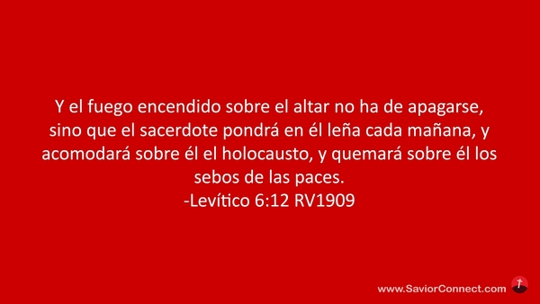 Y el fuego encendido sobre el altar no ha de apagarse, sino que el sacerdote pondrá en él leña cada mañana, y acomodará sobre él el holocausto, y quemará sobre él los sebos de las paces. -Levítico 6:12 RV1909