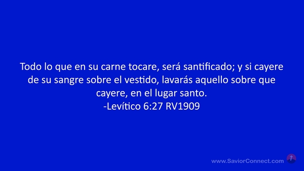 Todo lo que en su carne tocare, será santificado; y si cayere de su sangre sobre el vestido, lavarás aquello sobre que cayere, en el lugar santo. -Levítico 6:27 RV1909