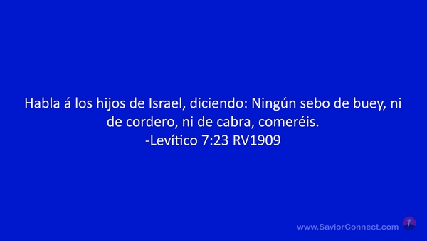 Habla á los hijos de Israel, diciendo: Ningún sebo de buey, ni de cordero, ni de cabra, comeréis. -Levítico 7:23 RV1909