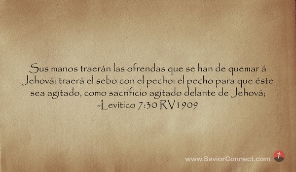 Sus manos traerán las ofrendas que se han de quemar á Jehová: traerá el sebo con el pecho: el pecho para que éste sea agitado, como sacrificio agitado delante de Jehová; -Levítico 7:30 RV1909