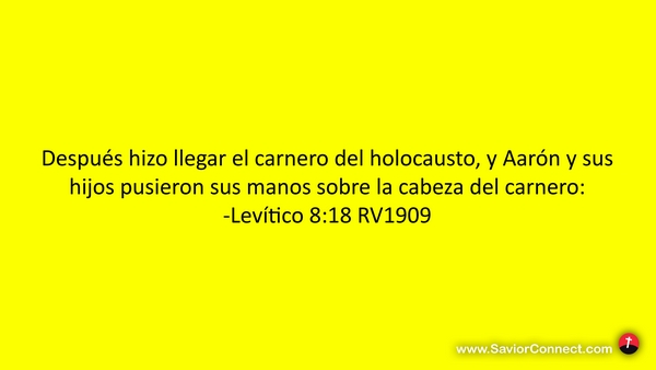 Después hizo llegar el carnero del holocausto, y Aarón y sus hijos pusieron sus manos sobre la cabeza del carnero: -Levítico 8:18 RV1909