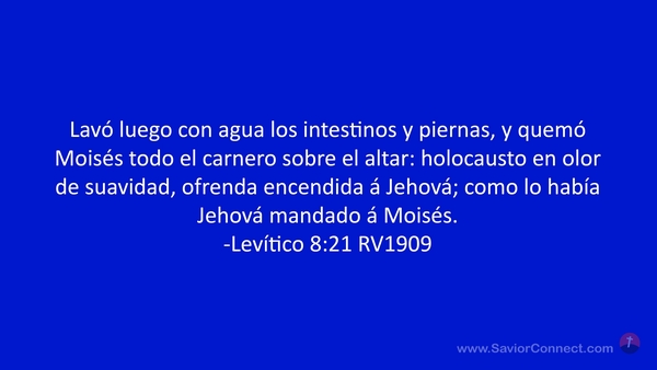 Lavó luego con agua los intestinos y piernas, y quemó Moisés todo el carnero sobre el altar: holocausto en olor de suavidad, ofrenda encendida á Jehová; como lo había Jehová mandado á Moisés. -Levítico 8:21 RV1909