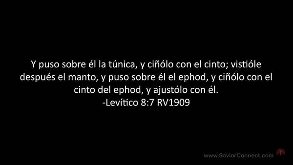 Y puso sobre él la túnica, y ciñólo con el cinto; vistióle después el manto, y puso sobre él el ephod, y ciñólo con el cinto del ephod, y ajustólo con él. -Levítico 8:7 RV1909