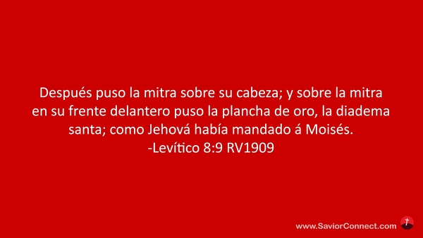 Después puso la mitra sobre su cabeza; y sobre la mitra en su frente delantero puso la plancha de oro, la diadema santa; como Jehová había mandado á Moisés. -Levítico 8:9 RV1909