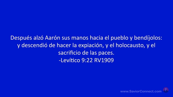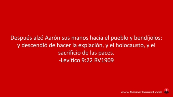 Después alzó Aarón sus manos hacia el pueblo y bendíjolos: y descendió de hacer la expiación, y el holocausto, y el sacrificio de las paces. -Levítico 9:22 RV1909