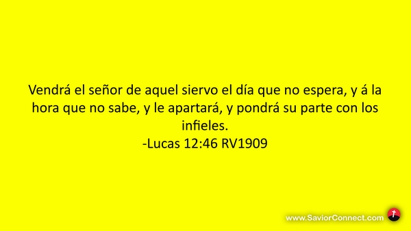 Vendrá el señor de aquel siervo el día que no espera, y á la hora que no sabe, y le apartará, y pondrá su parte con los infieles. -Lucas 12:46 RV1909