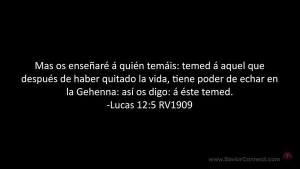 Mas os enseñaré á quién temáis: temed á aquel que después de haber quitado la vida, tiene poder de echar en la Gehenna: así os digo: á éste temed. -Lucas 12:5 RV1909