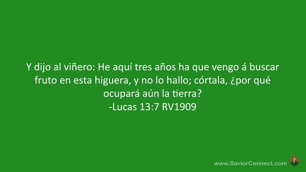Y dijo al viñero: He aquí tres años ha que vengo á buscar fruto en esta higuera, y no lo hallo; córtala, ¿por qué ocupará aún la tierra? -Lucas 13:7 RV1909