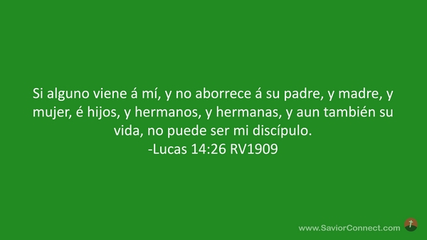 Si alguno viene á mí, y no aborrece á su padre, y madre, y mujer, é hijos, y hermanos, y hermanas, y aun también su vida, no puede ser mi discípulo. -Lucas 14:26 RV1909