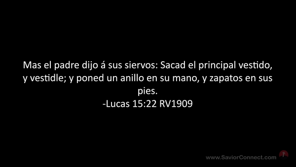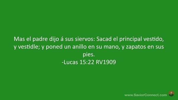 Mas el padre dijo á sus siervos: Sacad el principal vestido, y vestidle; y poned un anillo en su mano, y zapatos en sus pies. -Lucas 15:22 RV1909