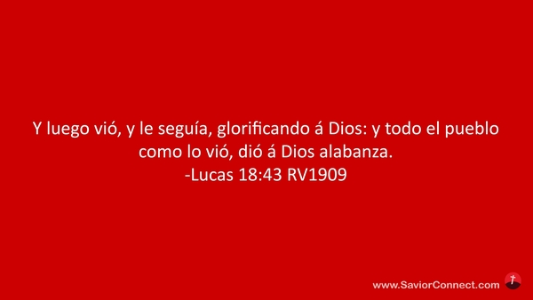 Y luego vió, y le seguía, glorificando á Dios: y todo el pueblo como lo vió, dió á Dios alabanza. -Lucas 18:43 RV1909