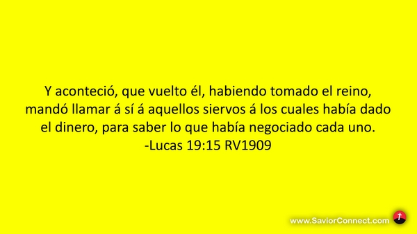 Y aconteció, que vuelto él, habiendo tomado el reino, mandó llamar á sí á aquellos siervos á los cuales había dado el dinero, para saber lo que había negociado cada uno. -Lucas 19:15 RV1909