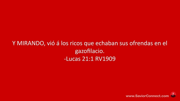 Y MIRANDO, vió á los ricos que echaban sus ofrendas en el gazofilacio. -Lucas 21:1 RV1909